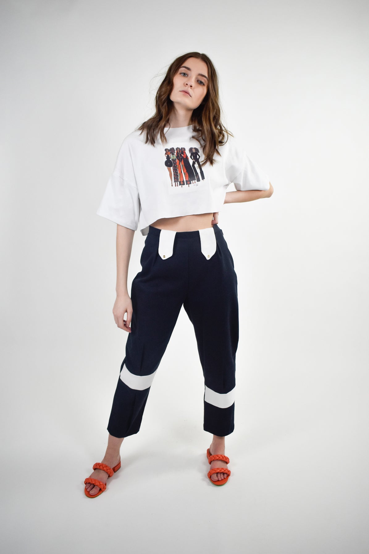 Le t-shirt MILAN présente une illustration de la première collection de Moni Amuli Couture. Il met de l'avant le message «Girl Power». Confectionné en coton, il affiche une coupe ample avec un classique col rond et assure le confort. Ce t-shirt blanc classique est un incontournable qui s’agencera à toutes vos tenues saison après saison.